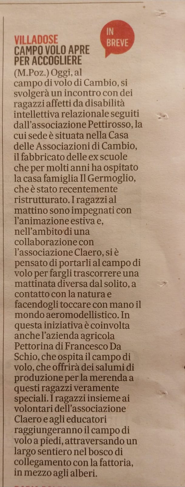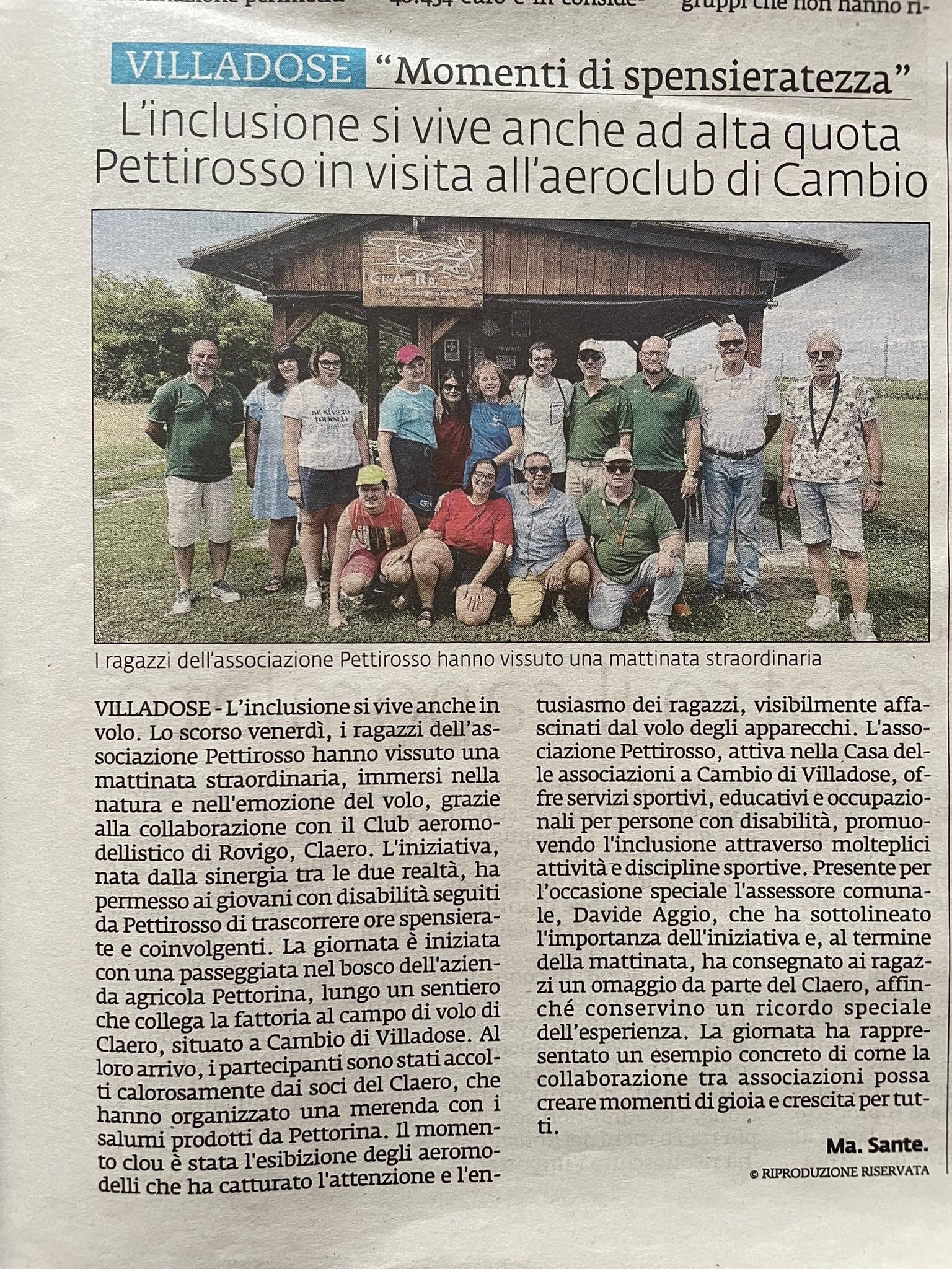 20/07/2025 – L’Inclusione Si Vive Anche Ad Alta Quota – Pettirosso in visita All’Aeroclub di Cambio